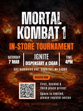 Name: Mortal Kombat 1 In-Store Tournament at Ignite Dispensary & Cigar (18+)Date: March 7, 2026Time: 4:00 PM - 7:00 PM CSTWebsite: http://www.ignitedispensary.com